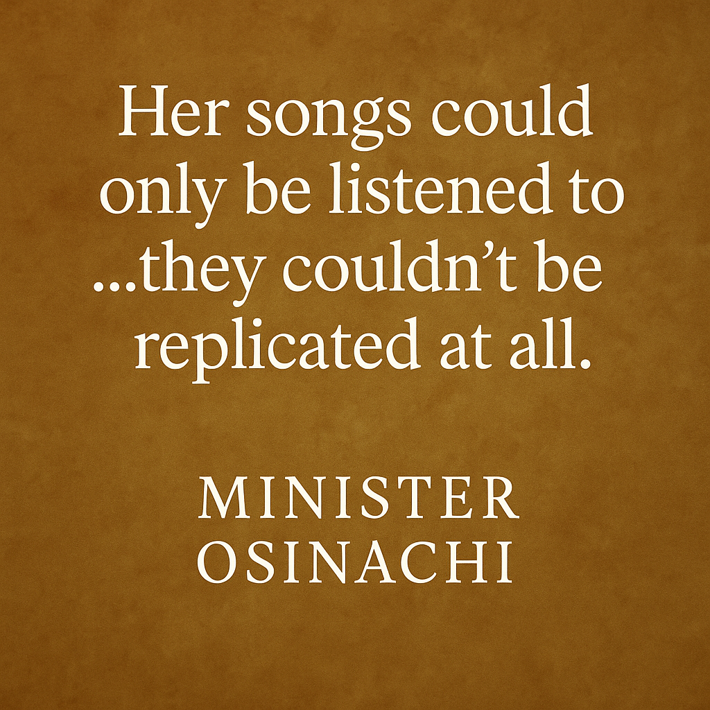 Minister Osinachi was a great woman of God. Her songs are timeless. They were not just songs. They were sounds, they were intercessions to God. I have tried practising her songs to replicate during service but to no success.